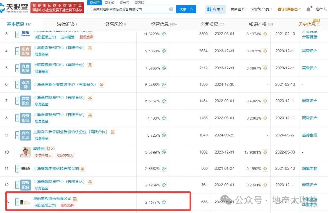 华丽家族还有涉及医药转型的事情有2022年5月参股了上海原能细胞生物低温设备有限公司(以下简称“原能生物”),参股比例是2.4577%。原能生物的实际控制人是瞿建国。这是其第四次创业的公司。据媒体报道,原能生物启动了B轮融资,投资估值大概在18亿元。而据经济观察报报道,原能生物总裁庄乾坤透露,原能生物正在筹备科创板独立上市计划,预计市值不低于40亿元。
