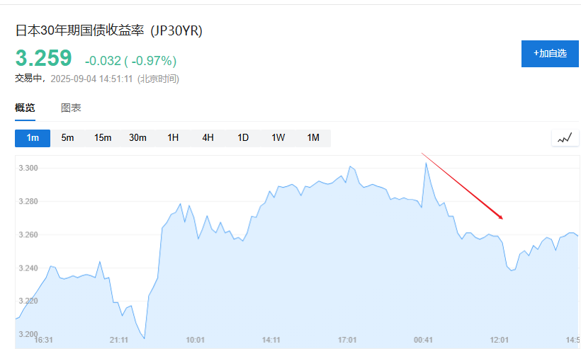 日本30年期国债收益率下跌2个基点至3.26%,进一步远离周三触及的3.285%历史高位。基准10年期收益率下滑2.5个基点至1.605%。