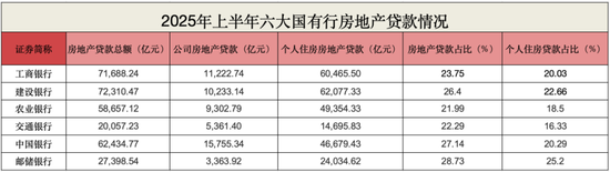 2025年上半年,六大国有银行的房地产贷款(包括公司贷款和个人贷款)合计为31.25万亿,较上年末微增53.92亿元。