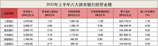 据WEMONEY研究室梳理,2025年上半年六大国有银行合计实现营业收入18331.19亿元,同比增长1.87%;合计实现归母净利润6825.24亿元,同比减少8.64亿元,相当于日赚37.4亿元。