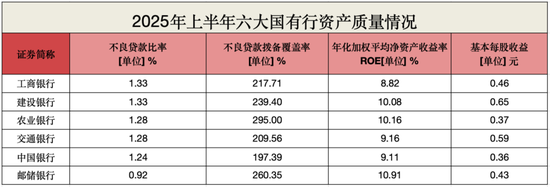 2025年上半年,六大国有行中,除邮储银行不良贷款率微增外,其余均有所下降。
