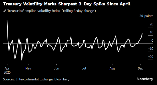 星展银行驻新加坡高级利率策略师Eugene Leow表示,美债波动性的上升“很可能是因为围绕非农数据的高度不确定性,再叠加对美联储独立性的担忧”,“市场可能也担心9月的季节性因素。”