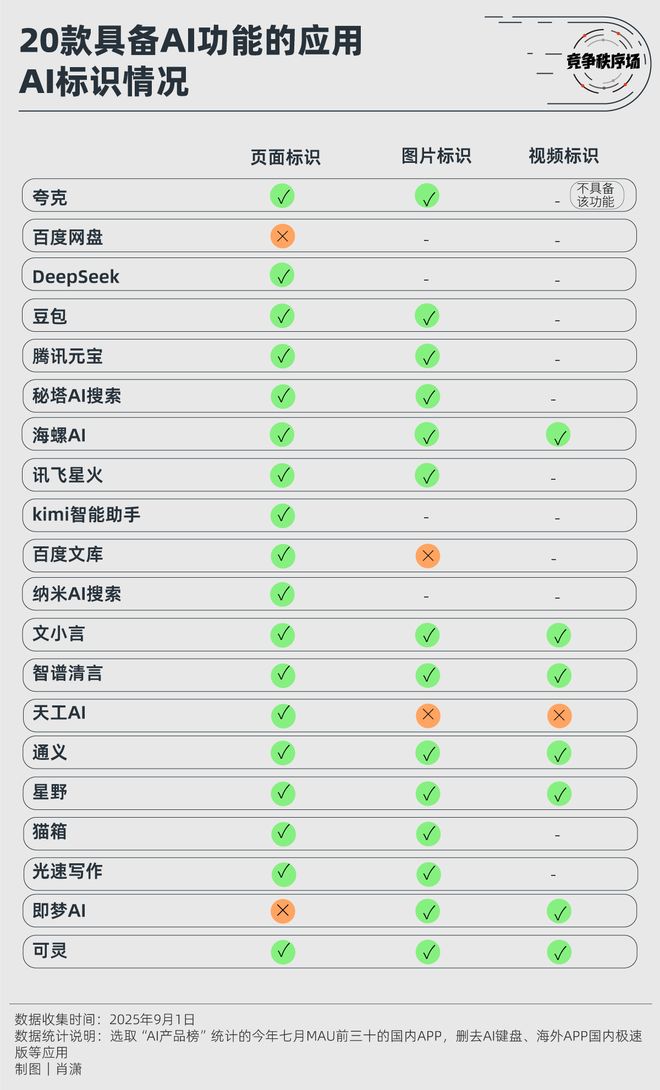 按照新规,页面标识和文字标识“二选一”即可。多位AI厂商法务坦言,由于担心影响用户体验,几乎没有平台会选择后者。而页面标识,各个平台做法各异。