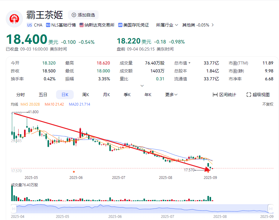 而这个“中国星巴克”,在美股上市不到五个月时间,股价就从上市之初41.8美元的更高点,跌到如今的18.4美元左右,股价腰斩,市值蒸发300亿人民币。