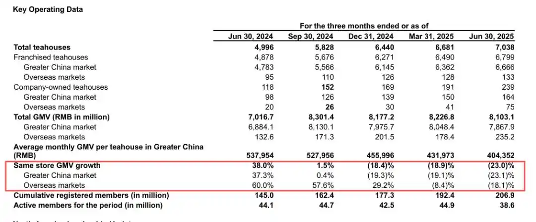 确实如此。在外卖大战打得火热的时候,霸王茶姬活跃会员数量大幅下滑,今年二季度时环比下降14.03%至3860万人。此前4个季度,霸王茶姬的活跃会员一直保持在4200万人以上。
