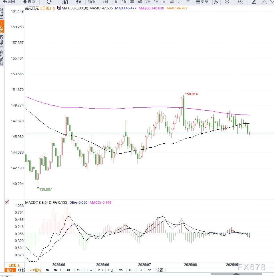 日线图形上来看,关键支撑位146.20(100日 *** A)和146.00,跌破可能进一步下探至145.35及心理关口145.00。上方阻力位146.70短期阻力,147.00整数关口为重要心理位;突破147.15-147.20后,可能上看147.55甚至148.00。