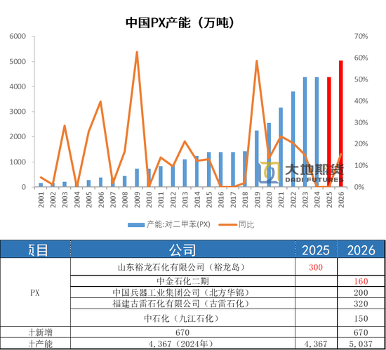 从全球范围来看,2025年-2026年,PX产能投放主要集中在中东和南亚,2025年沙特吉赞投产60万吨,2026年南亚印度石油有一套产能80万吨的装置要投产。