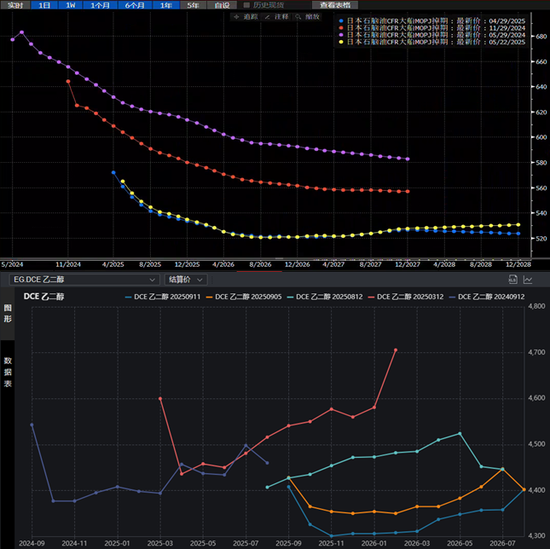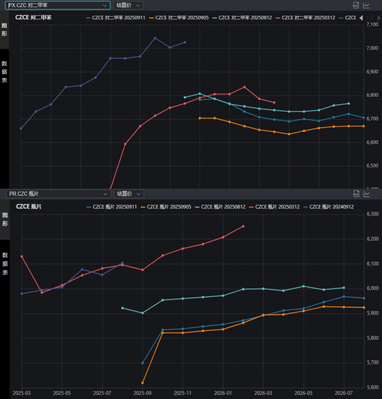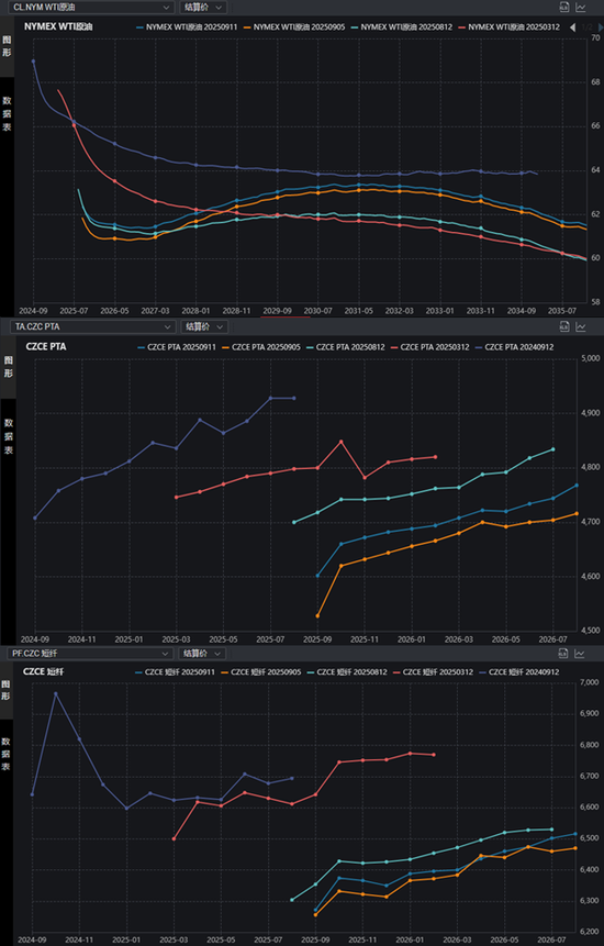 远期曲线结构的差异反映了聚酯产业链从上游到下游,供需结构的差异以及未来演变方向。原油和石脑油今年整体维持Back结构,对应低库存和紧平衡的基本面,但随着OPEC+的增产,原油供需平衡转宽松,26年之后back结构大幅放缓。而中游品种,PX远期曲线back,明年3月份之后转contango,投产压力开始显现,PTA远期曲线Contango结构,反应PTA供应压力较大。而乙二醇与PX结构比较类似,库存低位,现实端偏强,明年3月之前维持紧平衡局面。下游品种,短纤和瓶片呈现contango结构。