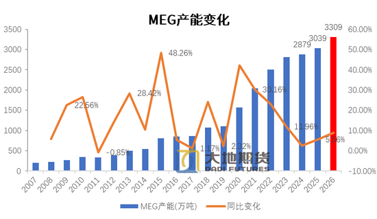 2026年,只有九江石化300万吨预投产,PTA新投产装置大幅减少,投产增速由今年的10.1%回落至3.2%。