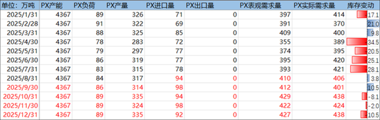 2025年山东裕龙石化还有300万吨投产,但只能生产MX,尚未拿到PX的生产批文,2025年暂无明确的产能增长。2026年,国内明确待投产装置共有670万吨,包括华锦200万吨,古雷320万吨,九江石化150万吨,中金石化160万吨能否投出还是未知数。