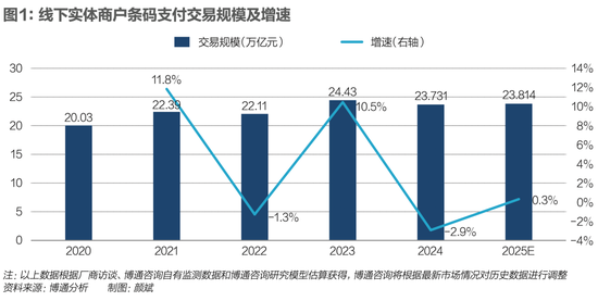 博通分析报告显示,2024年,全国非银支付机构银行卡收单交易规模、 *** 支付业务交易规模、线下实体商户条码支付市场交易规模均较上年有所下降。其中,线下实体商户条码支付市场交易规模约23.7万亿元,较2023年的24.4万亿元小幅下降。