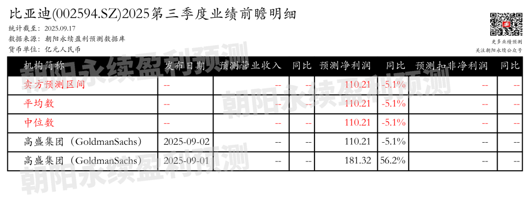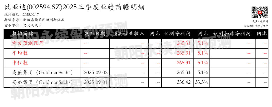 截至2025年09月17日,根据朝阳永续季度业绩前瞻数据: