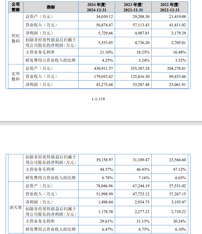 纵观2022至2024年,公司研发费用分别为1456.36万元、1848.65万元和2419.99万元,占营收比例分别为3.52%、3.24%和 4.25%。而同期可比公司——(688789.SH)和润天智(832246.NQ)的研发费用占比均在为6%以上,世纪数码的研发投入水平长期低于行业均值。