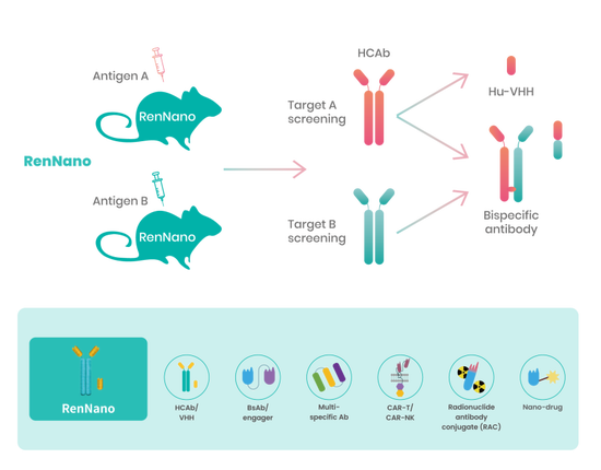 而在新的靶点和疗法仍在不断涌现之下,百奥赛图的布局同样深远,除了引领双抗潮流的RenLite平台,其RenNano平台在纳米抗体(Nanobody)、纳米双抗等领域同样具备领先优势。
