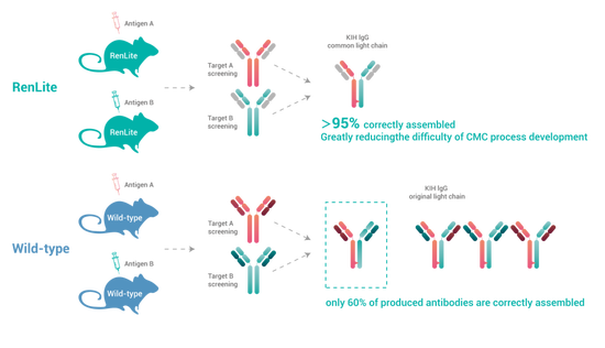双抗开发中最棘手的技术难题之一,便是在组装两条不同重链和轻链时产生的错配问题,这使得生产和CMC(化学、制造和控制)过程异常复杂。RenLite平台的核心优势——“共同轻链”技术,从源头上彻底解决了这一难题。