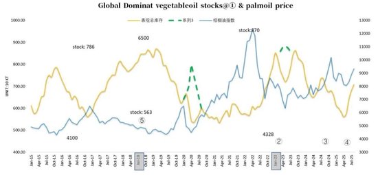 如果棕榈油在四季度能提供更多的减产,以及美国生柴方面能至少兑现此前预期的消费增量,那么到今年四季度末以及一季度初时,全球库存结构还是能看到一定程度上的去库,进而会引发一波类似24年的行情。因此,就考虑到未来可预见的高度而言,目前棕榈油价格需要更多的回调,才能打开行情的上方空间。