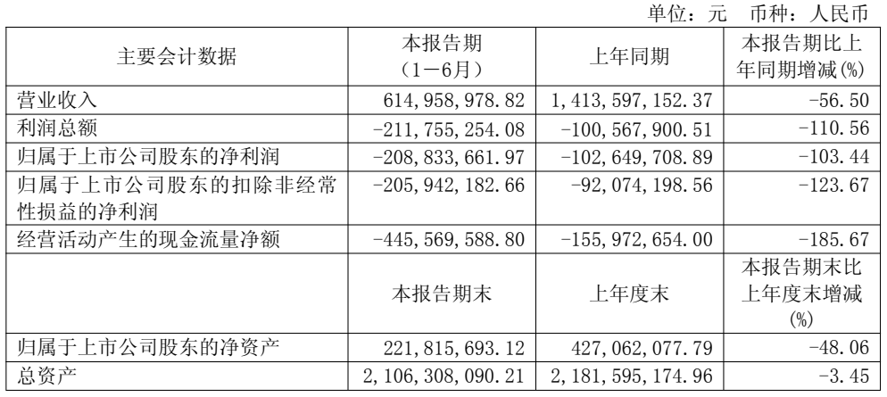 报告期内,实现营业收入6.15亿元,同比下降56.50%;归母净利润-2.09亿元,同比减少103.44%。