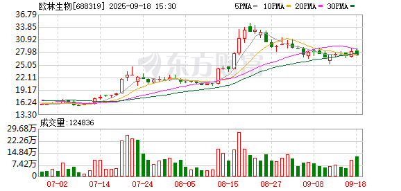证券时报·数据宝统计显示,欧林生物今日收盘价为27.19元,下跌3.17%,日换手率为3.08%,成交额为3.49亿元,全天主力资金净流入3753.01万元,近5日该股累计下跌0.77%,近5日资金合计净流入8426.62万元。