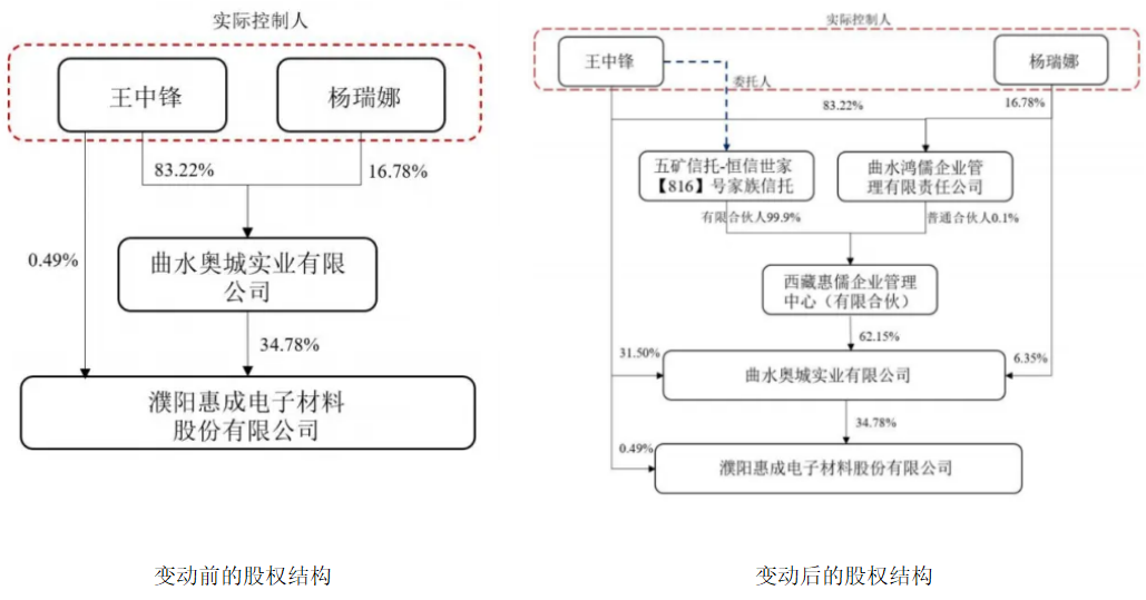 怎么变的? 中间的合伙企业“*惠儒”向“曲水奥城”增资1,243万元,从而获得了曲水奥城62.15% 的股权,成为其控股股东。