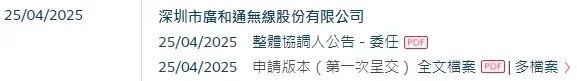 广和通,于2025年4月25日在港交所递交招股书,独家保荐。