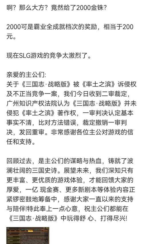 雷火公司此前认为简悦公司开发的《三国志·战略版》游戏抄袭该公司开发的游戏《率土之滨》,要求简悦公司停止侵权并赔偿。2023年5月,广州互联网法院一审判决简悦公司删除或修改《三国志·战略版》在案涉79项游戏规则中利用的构成《率土之滨》独创性表达的内容,并修改这些规则相互联系和作用形成的游戏机制;赔偿雷火公司经济损失及 *** 合理开支5000万元。
