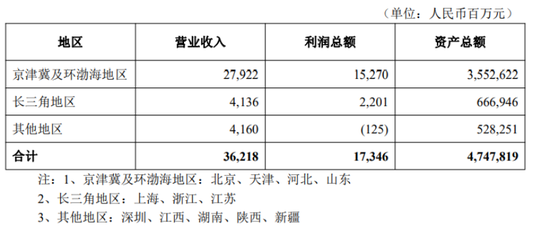 从营业收入地区分布来看,该行京津冀及环渤海地区营业收入占比为77.09%,为营业收入来源的核心区域,而长三角地区营业收入占比达11.42%。