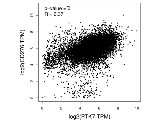 B7H3和PTK7在多种肿瘤共表达(来源:GEPIA网站)