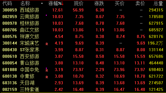 旅游板块拉升
