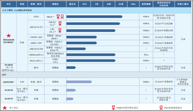 招股书显示,应世生物于2017年成立,致力于改进目前疗效有限的肿瘤治疗方案。截至递表时,公司的产品管线包括核心产品FAK抑制剂ifebemtinib、第二代选择性 FAK抑制剂IN10028以及OMTX705、IN30758、IN30778三款抗体偶联药物 ADC。