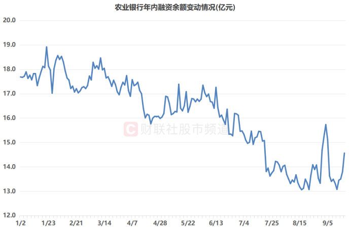 注:农业银行年内融资余额变动情况(截至9月18日数据)