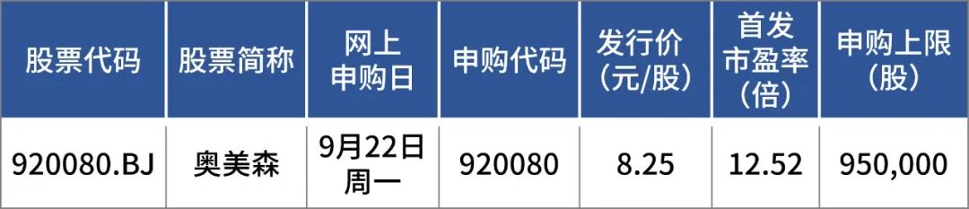 根据目前安排,9月22日至26日将有1只北交所新股可申购。拟于周一(9月22日)申购的是智能装备“隐形冠军”。公司自2003年成立以来,深耕热交换和管路加工技术,与国内外主要电器生产企业如、、奥克斯、、TCL家电、、大金空调、松下电器、江森自控、特灵、开利、富士通将军、三菱重工海尔等保持长期稳定合作关系。
