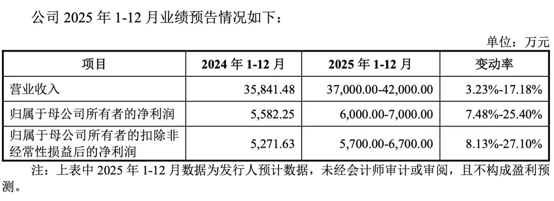 奥美森招股书称,预计公司2025年全年实现营业收入3.7亿元至4.2亿元,同比增长3.23%至17.18%;实现归母净利润6000万元至7000万元,同比增长7.48%至25.40%。