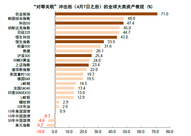 3)正视中国资产基本面“韧性”。与部分视角认为前期A股市场上行主要以流动性为核心驱动的观点相比,我们认为当前A股具备基本面的支撑,2025年A股上市公司有望结束此前四年的增速连降,转为实现正增长,较多成长风格在今年业绩层面显现高景气,指数上涨过程中的较多权重行业是当下我国重要产业景气上行的映射。后续结合我国大市场环境、大长全产业链、工程师红利、及政策红利,我们认为代表我国尤其新质生产力相关领域有望实现长足发展,以基本面驱动市场中期上行延续。