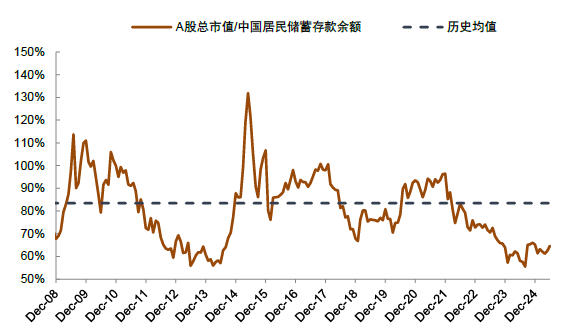 图表12:A股总市值/居民储蓄存款同样处于历史低位