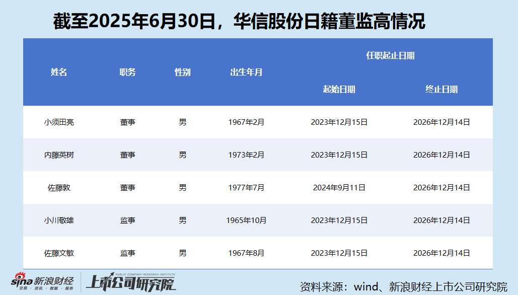 同时,华信股份历届日籍董监高均在主要客户处担任重要职务。截至2025年6月30日,华信股份日籍董监高名单如上图所示。