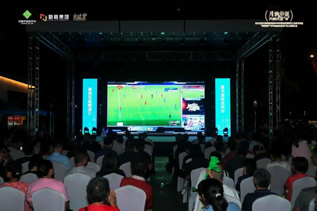 晚上7点35分开始,南通队对阵淮安队的比赛通过永盛里广场巨大LED屏幕实时直播,吸引了附近市民及在上海工作的南通籍人士驻足观看。大屏两边,“ *** 苏超燃浦江 最美通味香两岸”字样格外醒目。观赛区旁边,南通海鲜美食品鉴区香气四溢,如东栟茶菜馆的师傅正现场熬制竹蛏汤,热气腾腾的汤汁与球迷的呐喊声交织成独特的“跨界交响”。