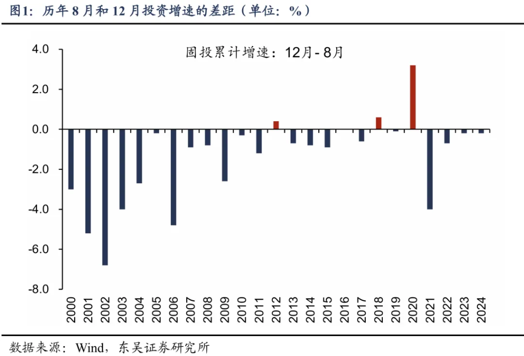 之一,投资惯性强、增速回升难度较大,2000年以来,只有3年年底固投累计增速相比8月有所回升,分别是2012、2018、2020年,除了2020年特殊,12和18年回升幅度在0.4和0.6个点。而今年前8个月固投累计增速为0.5%,促进投资回升,需要财政货币政策协同发力。