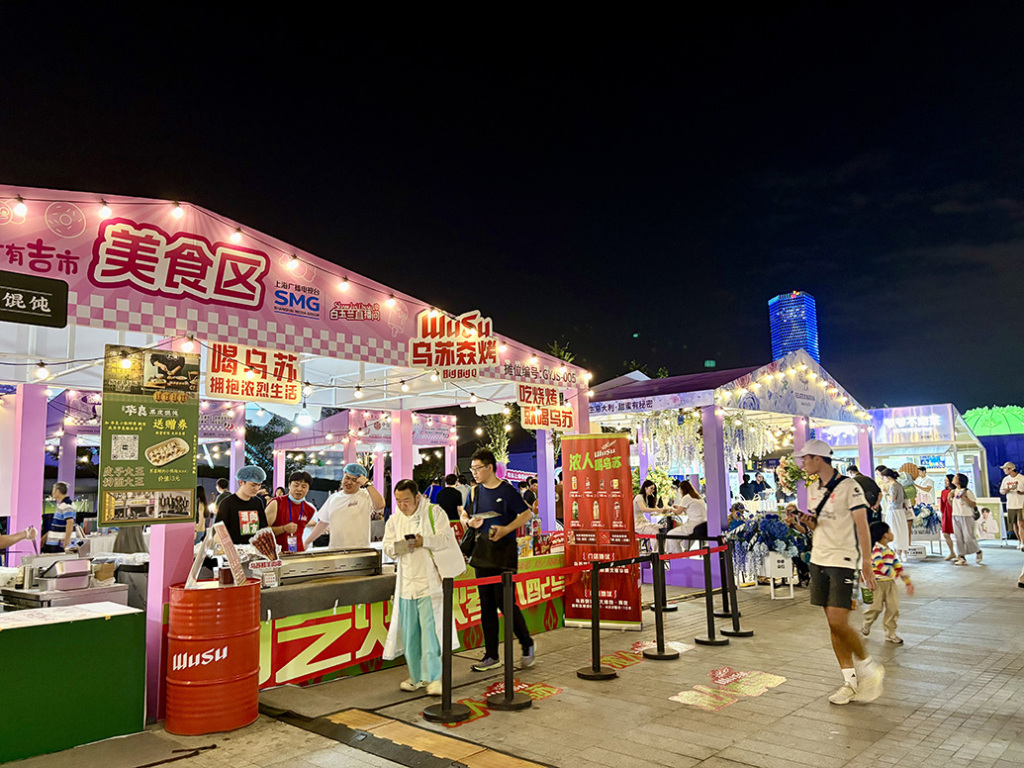 上海东方数智购商务有限公司总裁助理、市集负责人郑玥琪介绍,“东方有吉市”设置了20个摊位,其中7个摊位销售物品,19日-21日三天营业额达10万元,烧烤啤酒、奶茶冰淇淋摊位都颇受欢迎。