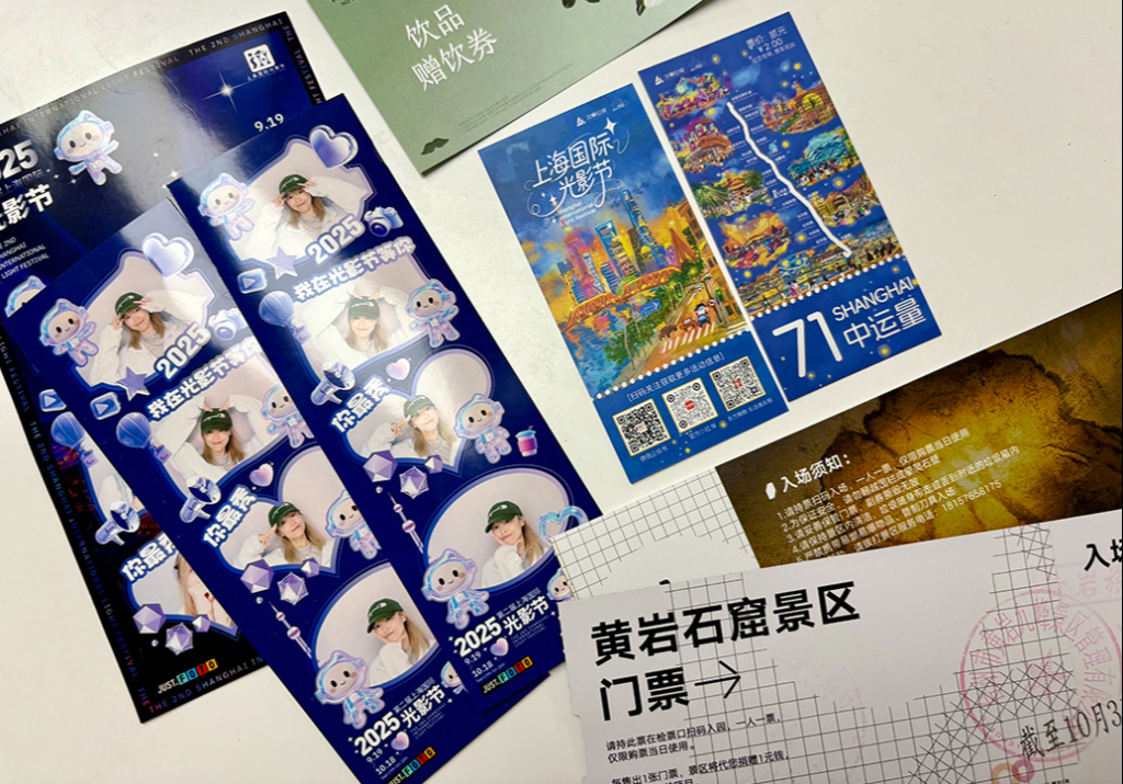 为了增强互动性,游客在现场可领取“光影护照”,完成打卡项目后可参与抽奖、兑换礼品,比如兑换奶茶券、大头贴、71路纪念车票、黄岩石窟景区门票等。