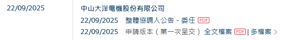 2025年9月22日,来自广东中山翠亨新区的中山大洋电机股份有限公司Zhong Shan Broad-Ocean Motor Co. Ltd.(简称“大洋电机”)在港交所递交招股书,拟在香港主板挂牌上市。
