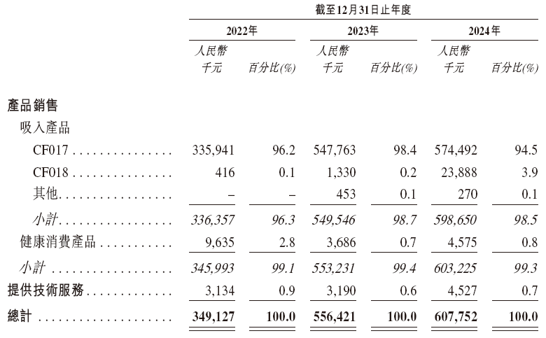 根据弗若斯特沙利文的资料,于2024年,按销量计,CF017占2023年中国布 *** 吸入药物市场约16%。
