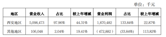 分地区来看,西安银行在西安地区实现营业收入50.98亿元、营业利润18.70亿元,其他地区实现营业收入1.06亿元、营业利润-4.73亿元。