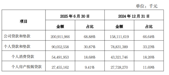 能够看到,西安银行个人贷款规模占比,从上年末的33.23%下滑至2025年上半年末的30.87%。