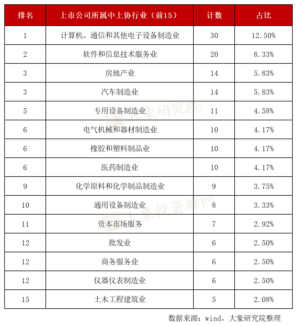 从240家上市公司最新披露日企业性质来看,民营企业有134家,地方国有企业有59家,中央国有企业有25家,公众企业有11家,外资企业有6家,其他企业有3家;集体企业有3家。