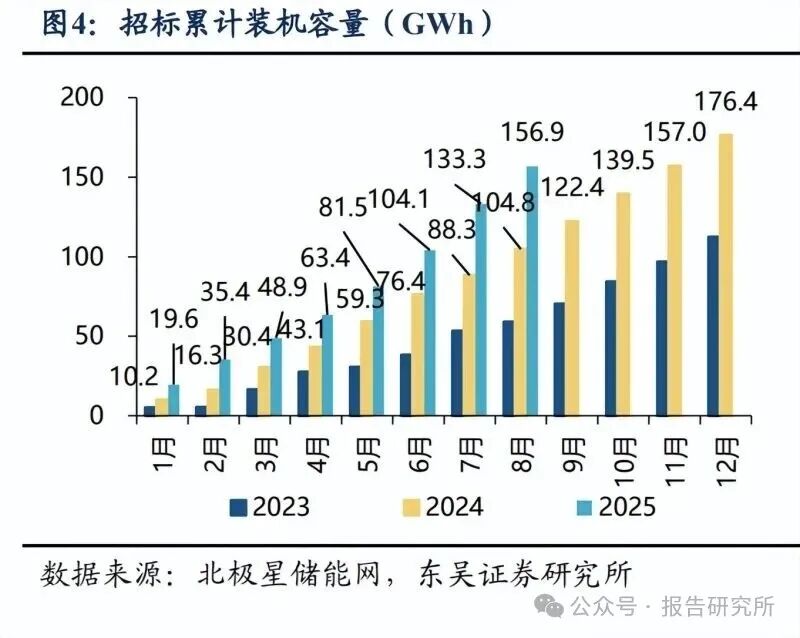 国内储能需求有望超预期释放。随着地方 *** 陆续出台容量电价补充政策,独立储 能项目收益率显著改善。以内蒙为例,若 10 年补贴维持,则前十年年均收入 1-1.2 亿, irr 可达 10-20%。 实际落地层面,国内储能招标与并网节奏明显加快:截至 7 月累计并网容量达到 51.3GWh,同比增长 65%;8 月累计招标容量达 156.9GWh,同比增长 50%。政策驱动 叠加项目收益率改善,推动国内储能装机需求加速释放,行业需求有望超预期。
