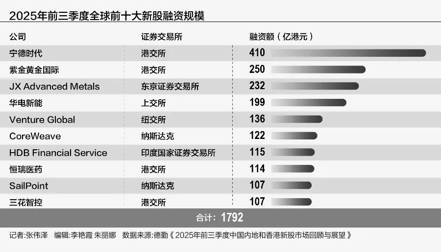 9月23日,德勤中国资本市场服务部发布《2025年前三季度中国内地和香港新股市场回顾与展望》(下称“报告”),报告指出,以集资额计算,港交所预计将蝉联全球新股集资榜首。