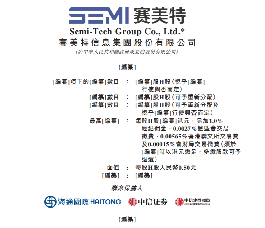 瑞财经 王敏9月19日,据港交所官网,赛美特信息集团股份有限公司(以下简称:赛美特)向港交所主板提交上市申请书,海通国际、及国际为联席保荐人。