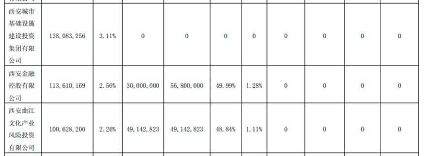 除了西安金控外,目前西安银行另一实控人关联股东西安曲江文化产业风险投资有限公司质押比例为48.84%,也已接近50%。