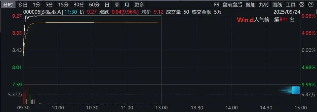 房地产股早间集体走强,板块指数盘初一度放量直线拉升涨逾3%。深振业A开盘仅约2分钟就垂直涨停,股价创年内新高,、、、张江高科等也纷纷直线涨停,并创阶段性新高。