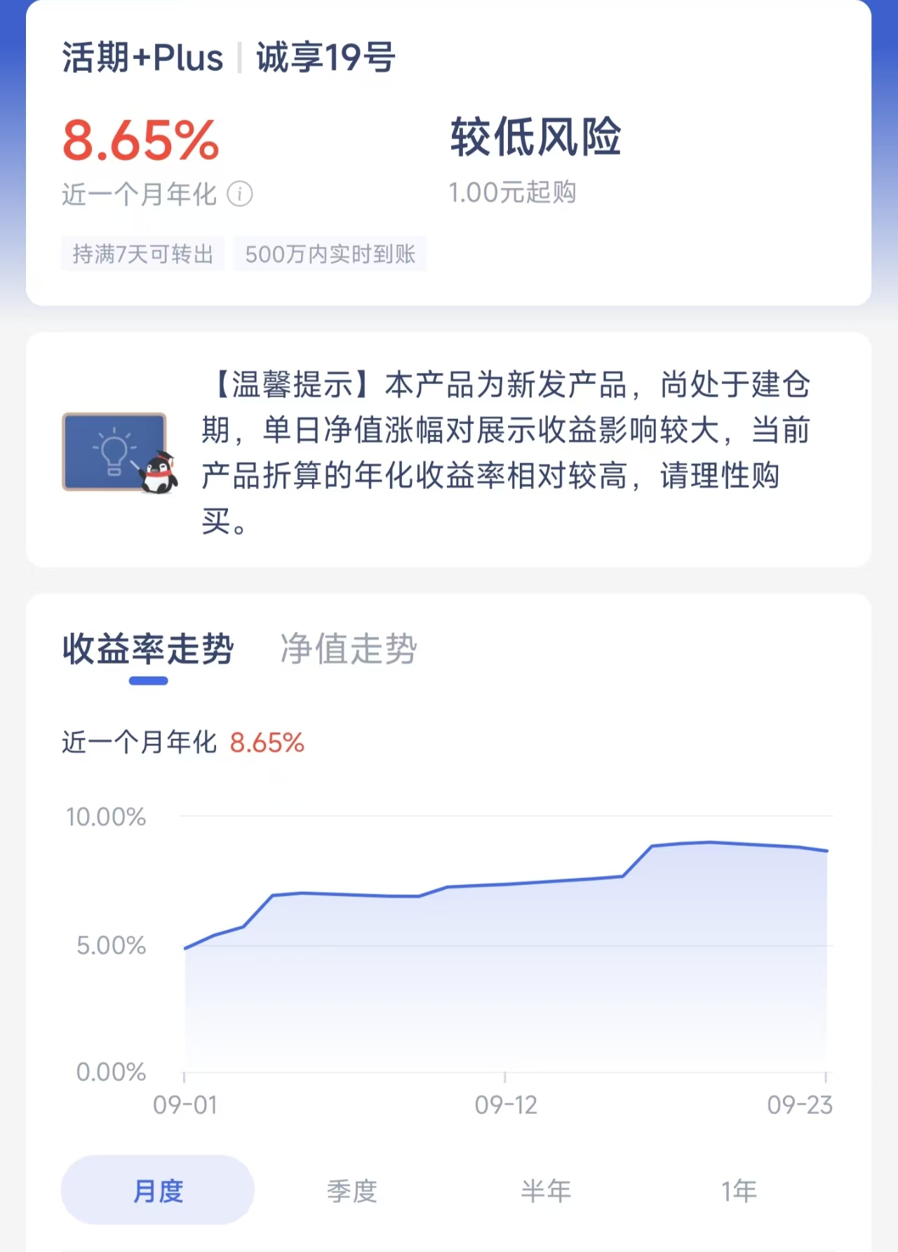 不止诚享19号,9月以后,“活期+Plus”系列产品收益回暖,多款产品收益率冲高。
